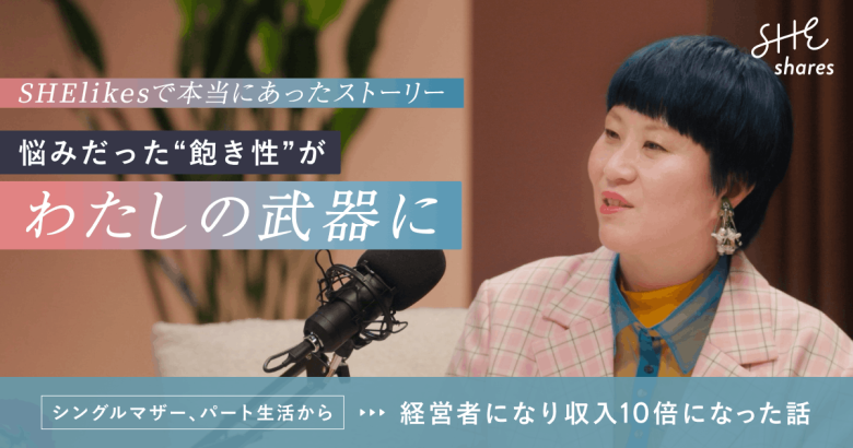 インタビュー 将来が不安で仕方がなかったシングルマザーの私が、経営者になり月収10倍へ【… 2026/04/27 erina_hashimoto https://shares.shelikes.jp/wp-content/uploads/2023/10/logo_footer.png SHEshares