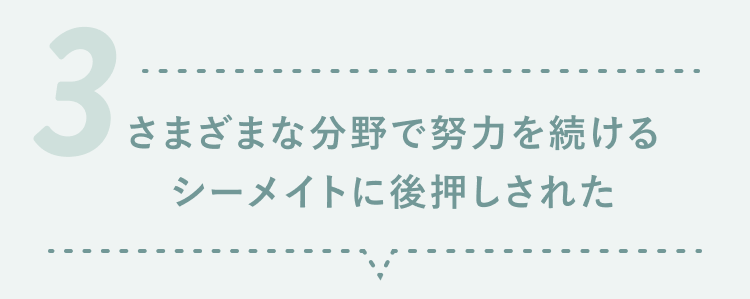 そして何より、仕事を頑張ったり、強みを磨いたりと努力しているメンバーの姿から多くの刺激を受け、「みんなが頑張っているから、私も前に進もう」と思えました。