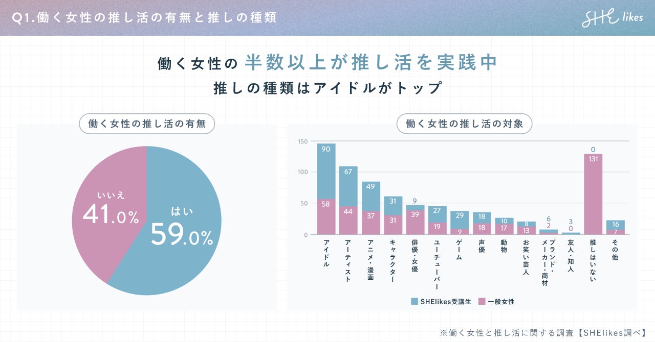 働く女性の半数以上が推し活を実践中 働く女性の推しの対象はアイドルがトップ