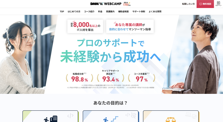 | 対象コース | Webデザインコース、エンジニア転職コース、フリーランスコースなど |