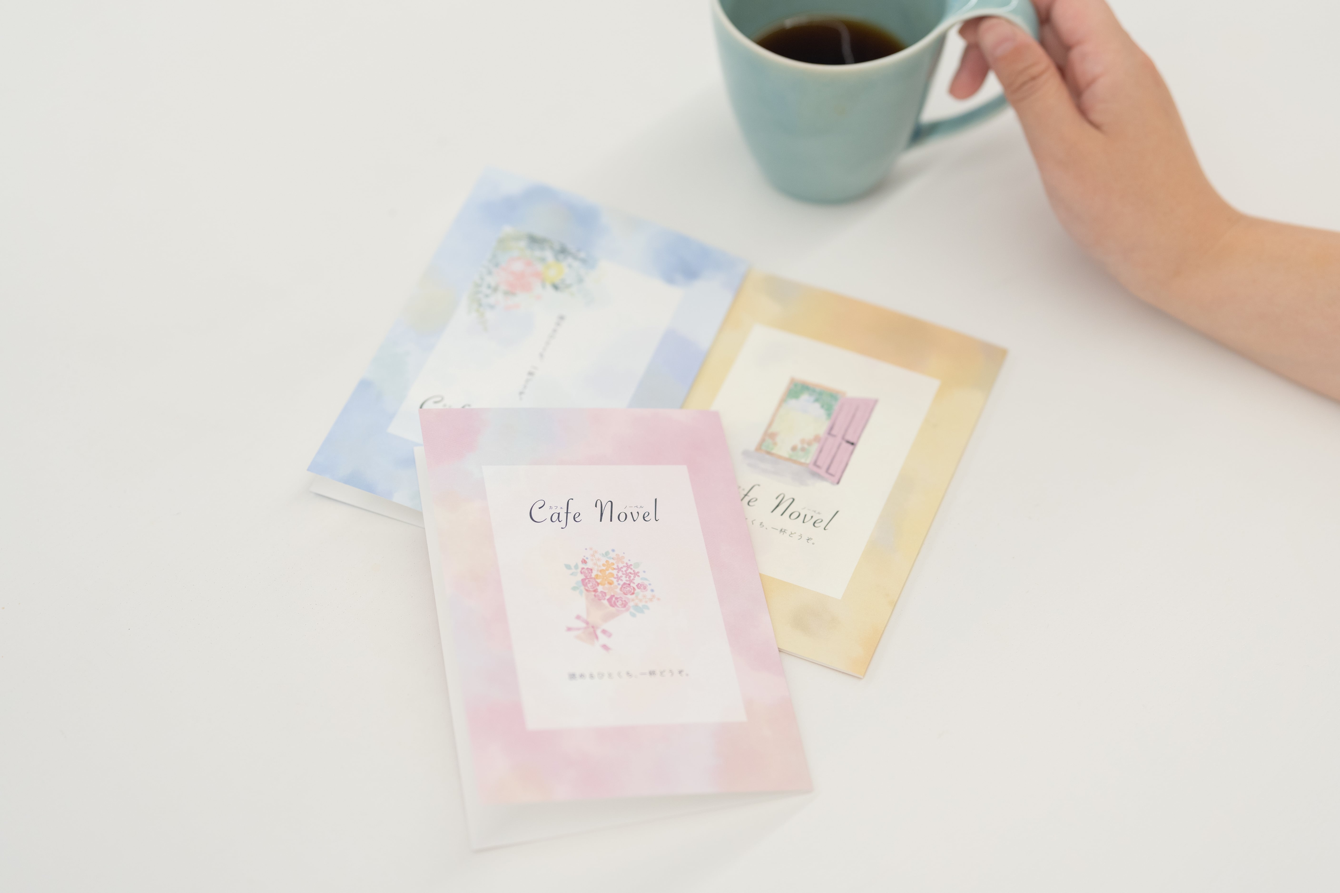 専業主婦のゆうこさんが子育てをしながら開発した「小説つきコーヒー」。デザインやライティングが得意な受講生と力を合わせて完成。