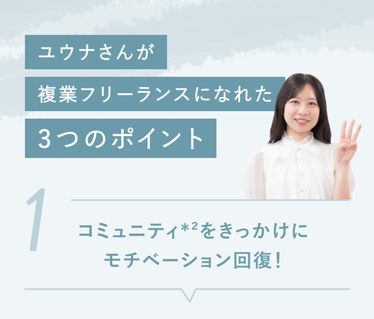 体験レッスンのカウンセリングを担当してくれたキャリアプランナーの方が偶然にも同い年で。フリーランスとして活躍されている姿に感銘を受け、「私もやってみよう!」と入会を決意したんです!