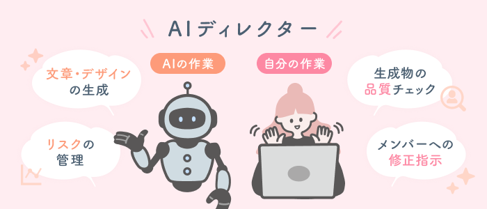 具体的な業務内容は案件によって異なりますが、AIが作成した文章やデザインの品質チェック、修正指示、納期管理などを担当するケースが多いようです。