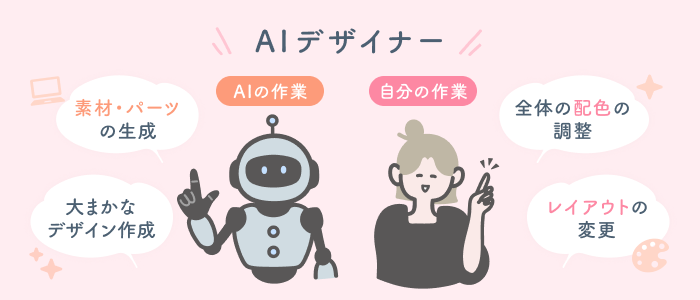 AIが作成したデザインをそのまま使うのではなく、配色やレイアウトを調整し、クライアントの要望に合わせて仕上げることが重要です。