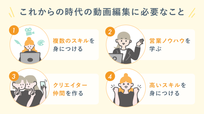 したがって、動画編集のスキルだけでなく、営業の基本もしっかりと身につけることが大切です。
