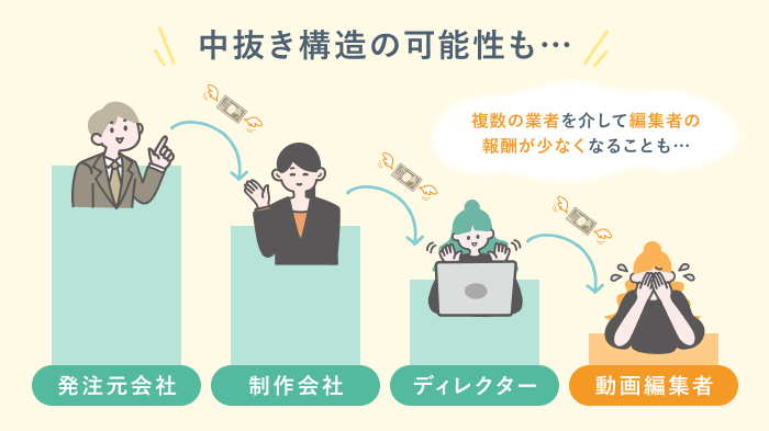 動画編集の業界は、複数の企業を介して案件を紹介されるケースがあります。その際、中間業者が手数料を得るため、動画編集者の報酬が少なくなることも少なくありません。