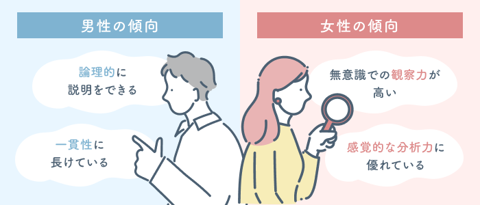 注目すべきは、「女性は無意識での観察力が高い傾向がある」*1ことです。「なんか違うかも…」など、感覚的な分析力に優れている場合もあります。