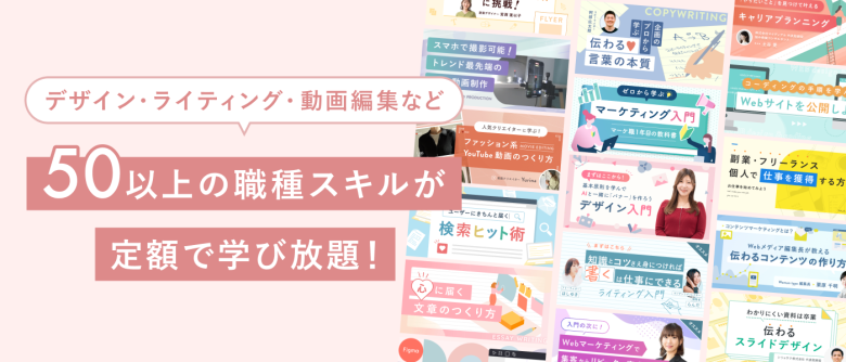 学べるスキルWebデザイン 動画編集 ライティング マーケティング 起業ノウハウ その他50以上の職種スキル
