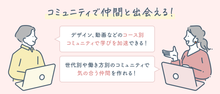 SHElikesはスキルアップだけでなく、お仕事紹介やコミュニティにも力を入れています。のため、SHElikesで一緒付き合える仲間と出会う方も少なくありません。