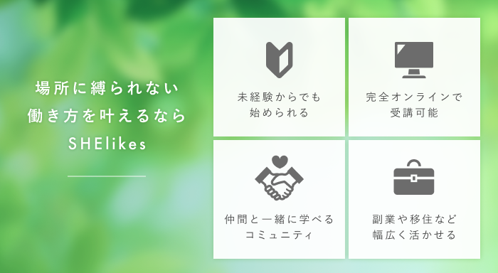 SHElikesは、あなたが「好きな場所で働くスキル」を手に入れるためのスクールです