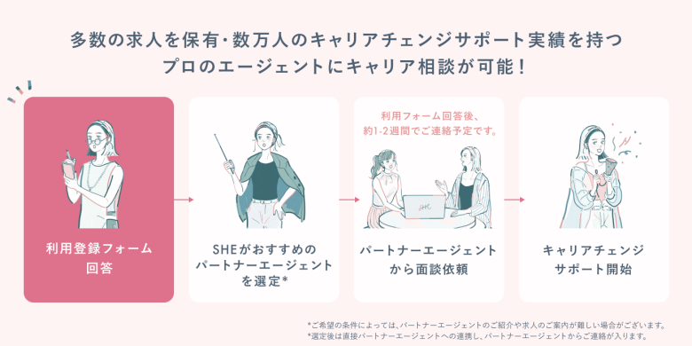 これらに加え、転職サポートが充実していることもSHElikesが選ばれる理由です。