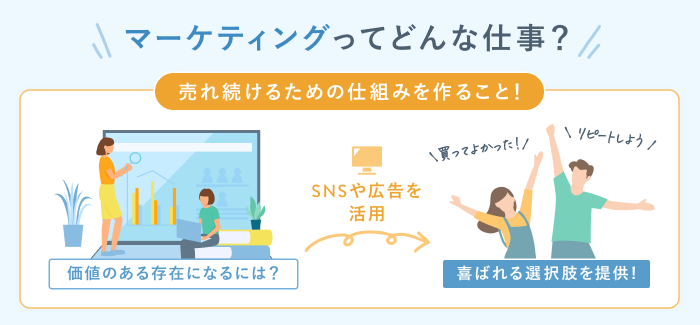 マーケティングの捉え方は人によってさまざまですが、端的に言えば「売れ続ける仕組みをつくること」です。