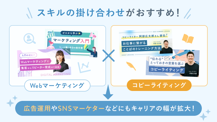 マーケティング視点を持ったコピーは、集客や反応の改善といった成果につながりやすく、社内でも評価されやすいスキルです。