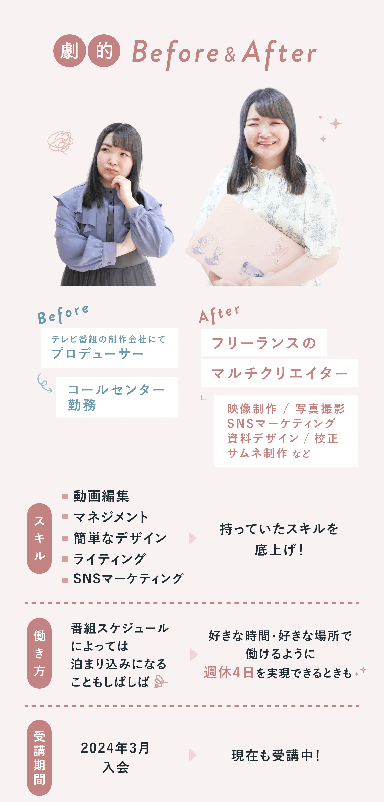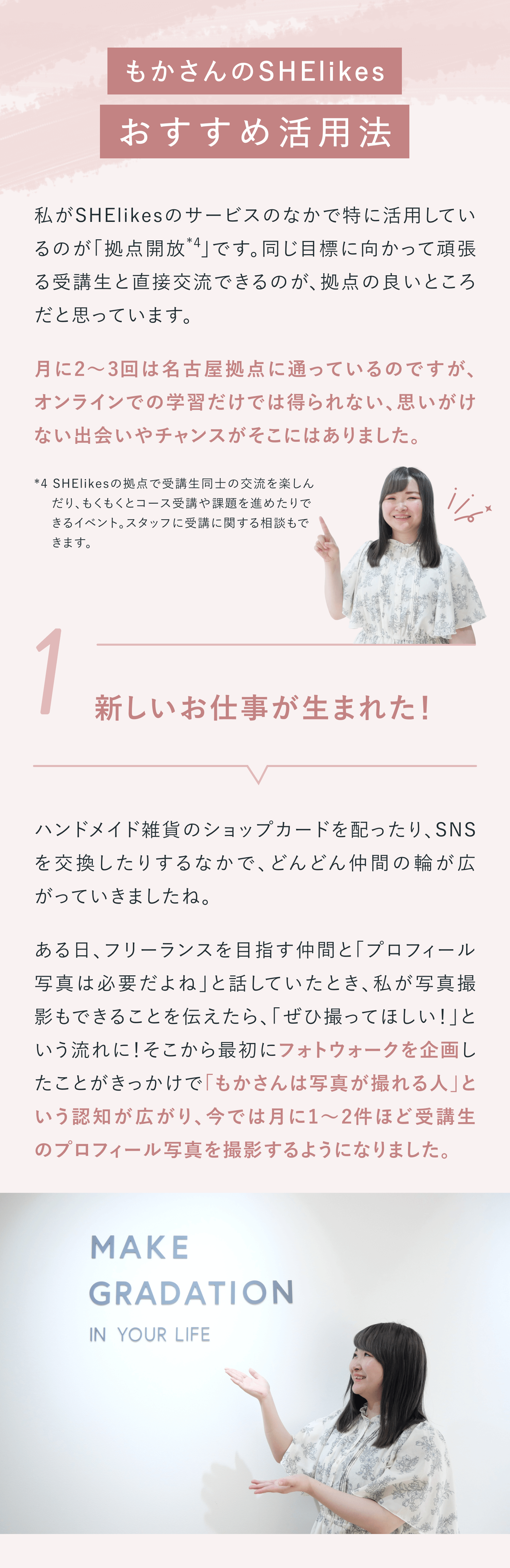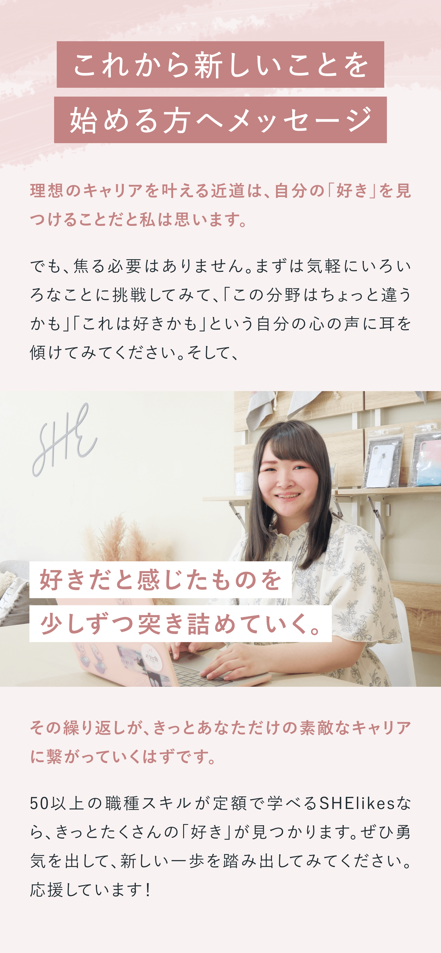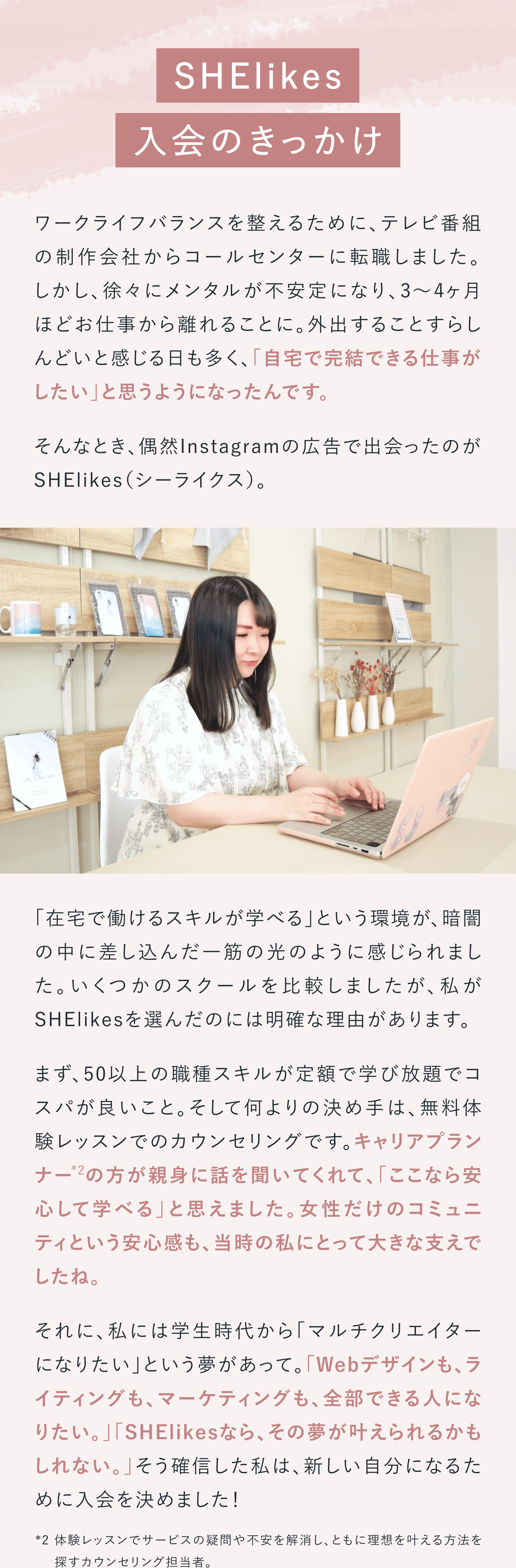 保育士として働きながらキャリアアップを目指しSHElikesに入会。現在はWebデザイナーとして新たな挑戦を重ね、自分らしい働き方を築く小学生2人の母。