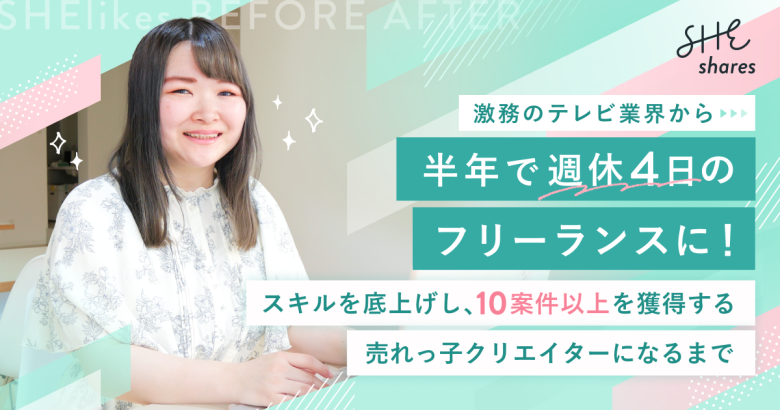 インタビュー 激務のテレビ業界から、半年で週休4日のフリーランスに!スキルを底上げし、1… 2026/02/04 kameko https://shares.shelikes.jp/wp-content/uploads/2023/10/logo_footer.png SHEshares